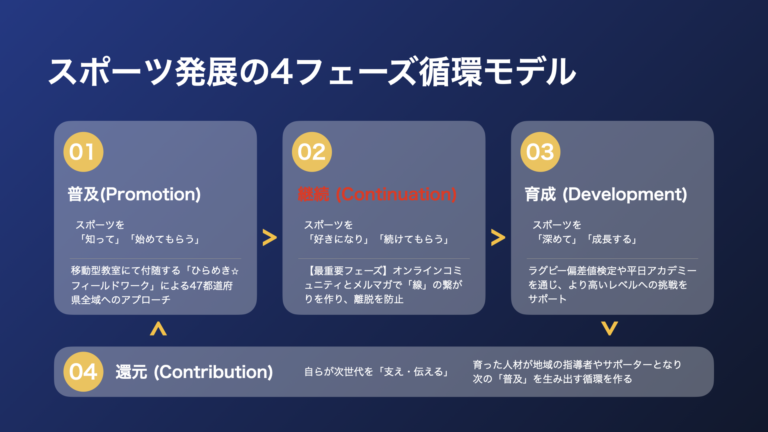 2025年に全国47都道府県完遂を経て、5年間で見えてきた「知見に触れる機会」や「最新の情報を得られる環境」というリアルな問題を解決していくため、普及育成をつなぐ「継続」に着目して新たに舵を切っていきます。