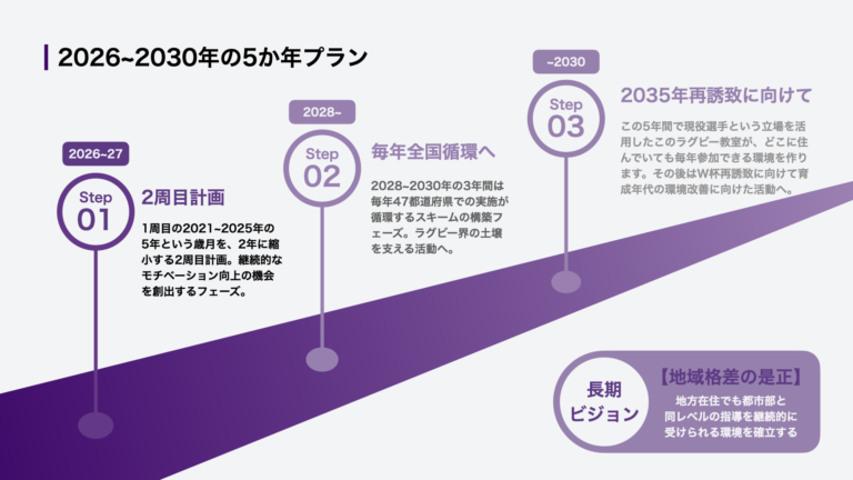 さらに、2026年からは活動の屋号を「岸岡式ラグビー教室」へと変え、第二章としてスタートしていきます。